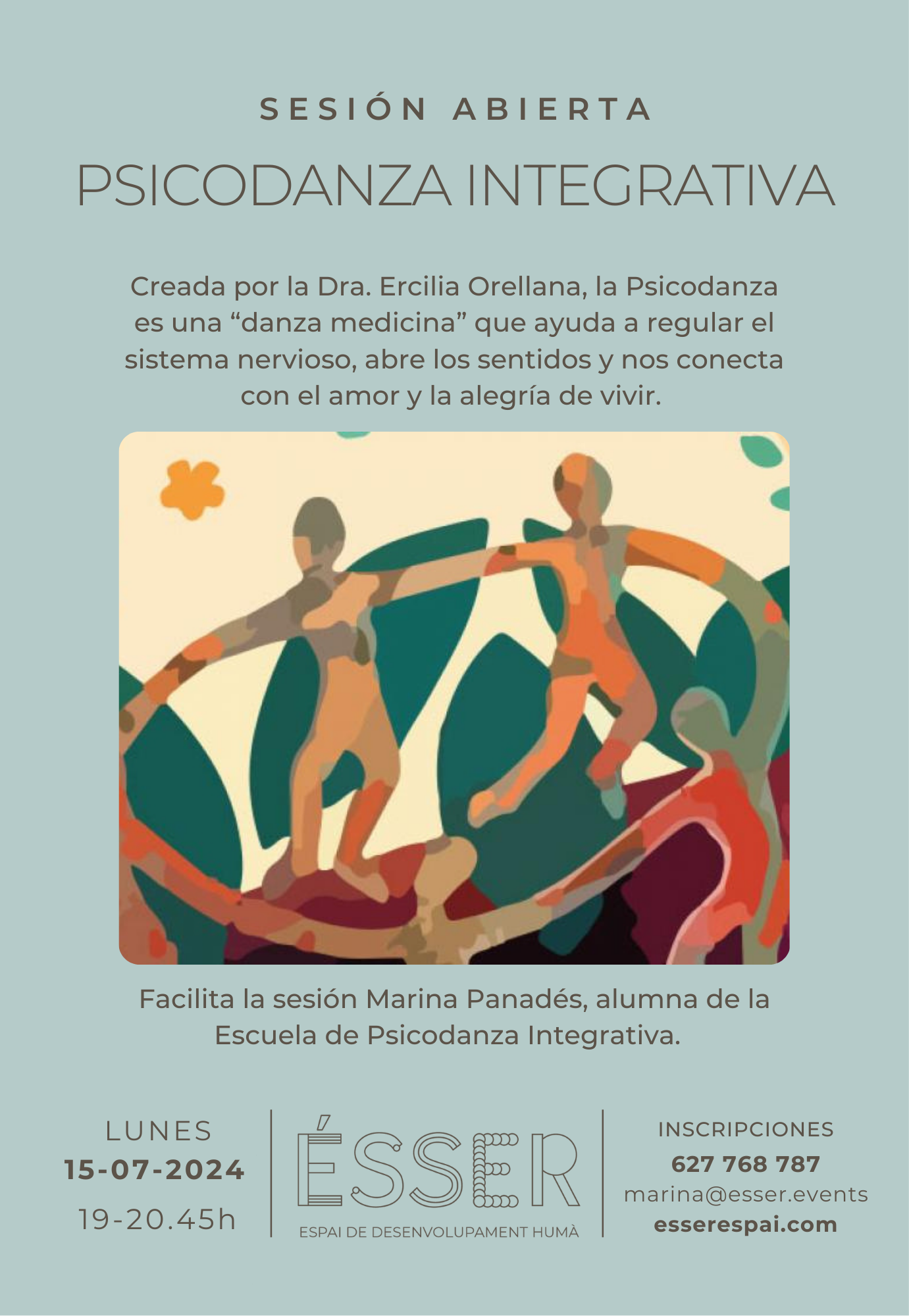 Dentro de nuestro trabajo de MOVIMIENTO SANADOR ofrecemos con mucha ilusión esta primera sesión abierta basada en la PSICODANZA INTEGRATIVA de la Dra. Ercilia Orellana. Un método de danzaterapia que es un placer para los sentidos.