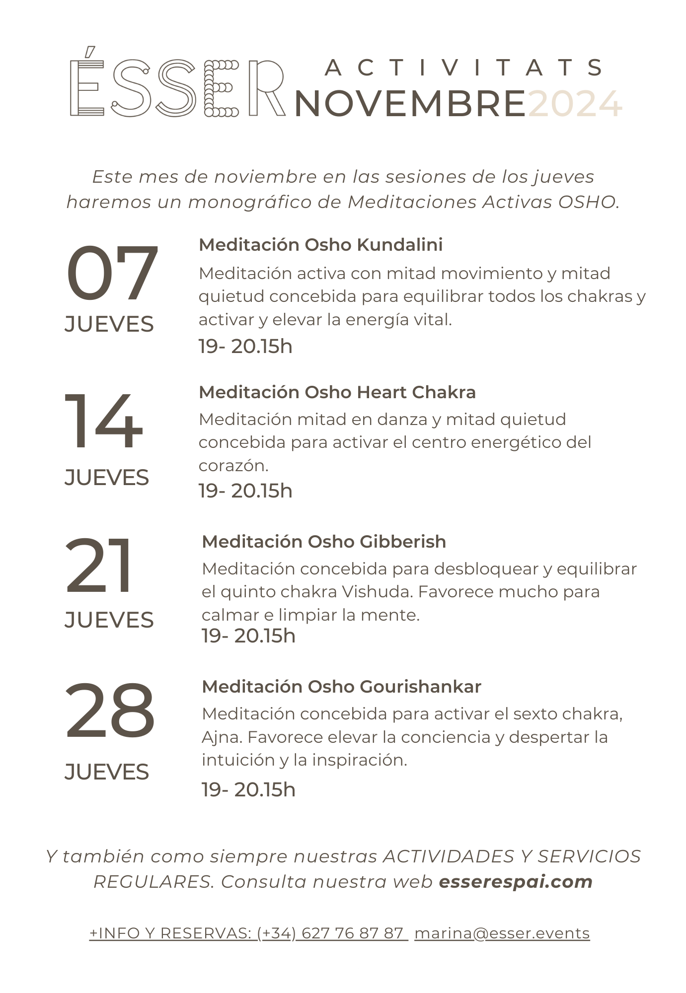 Reserva, más información y consultas: marina@esserespai.com o Whatsapp 627768787