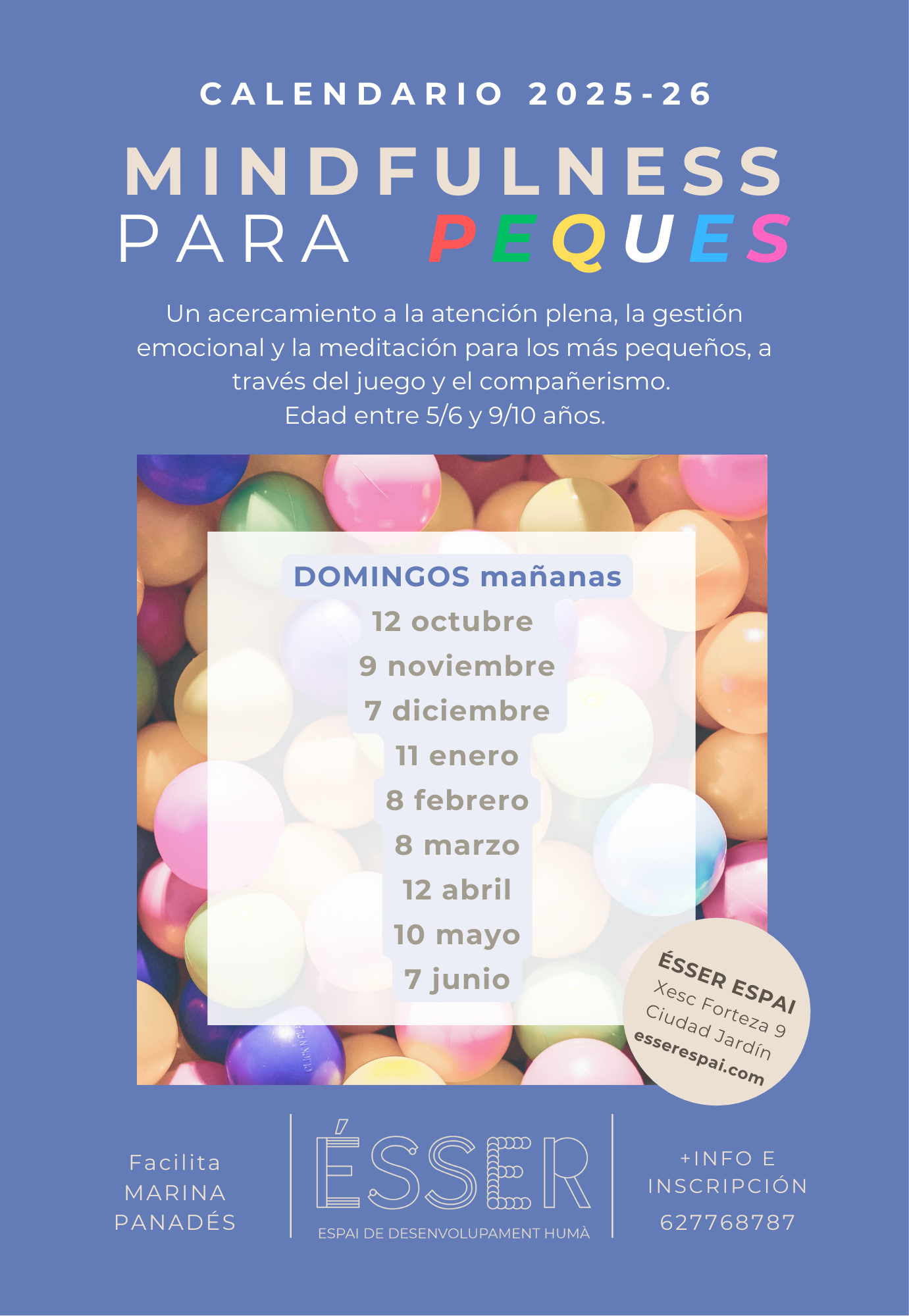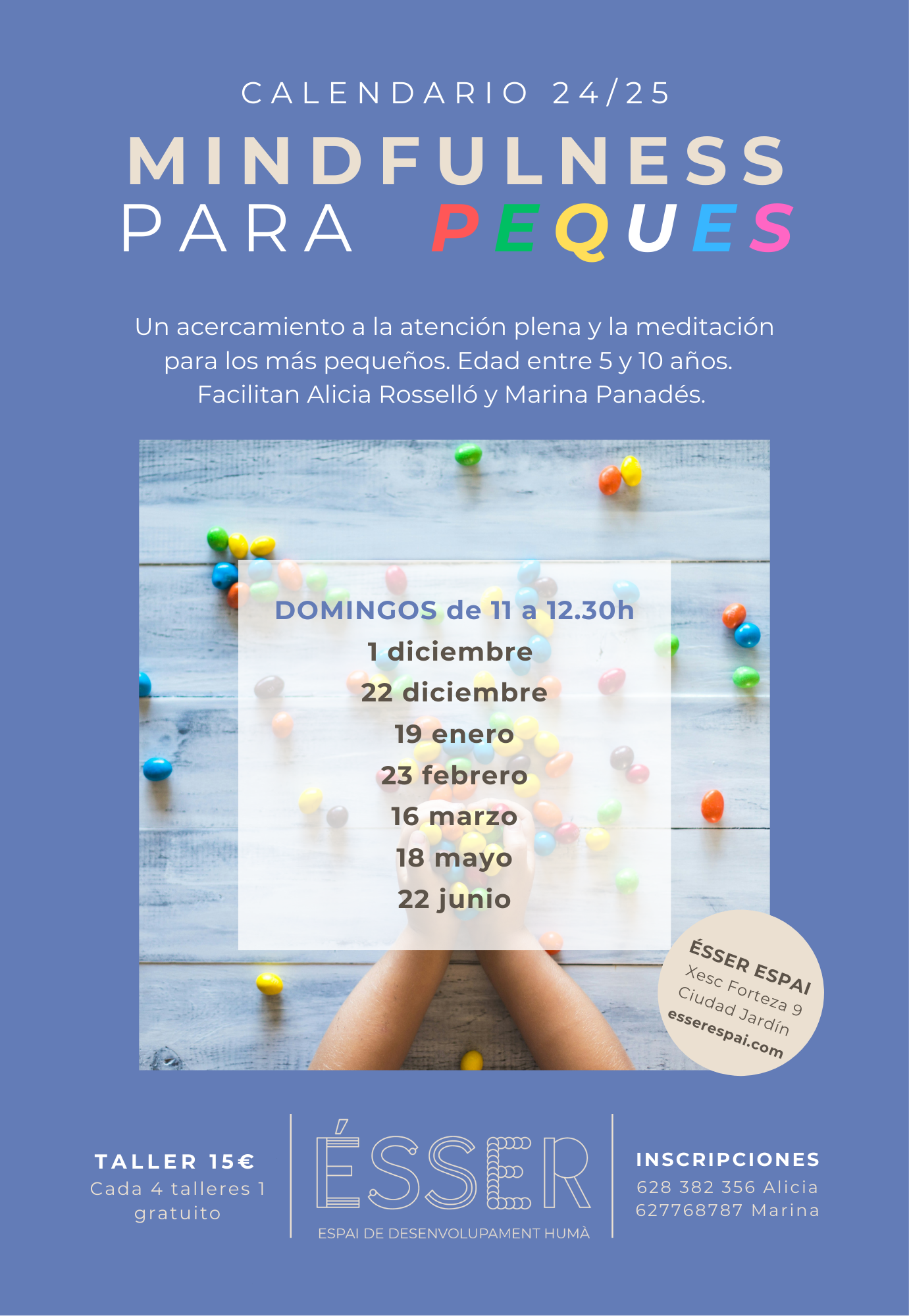 Un taller matinal para compartir con los más pequeños este valioso recurso que es la atención plena y la meditación. Facilitan Alicia Rosselló y Marina Panadés.