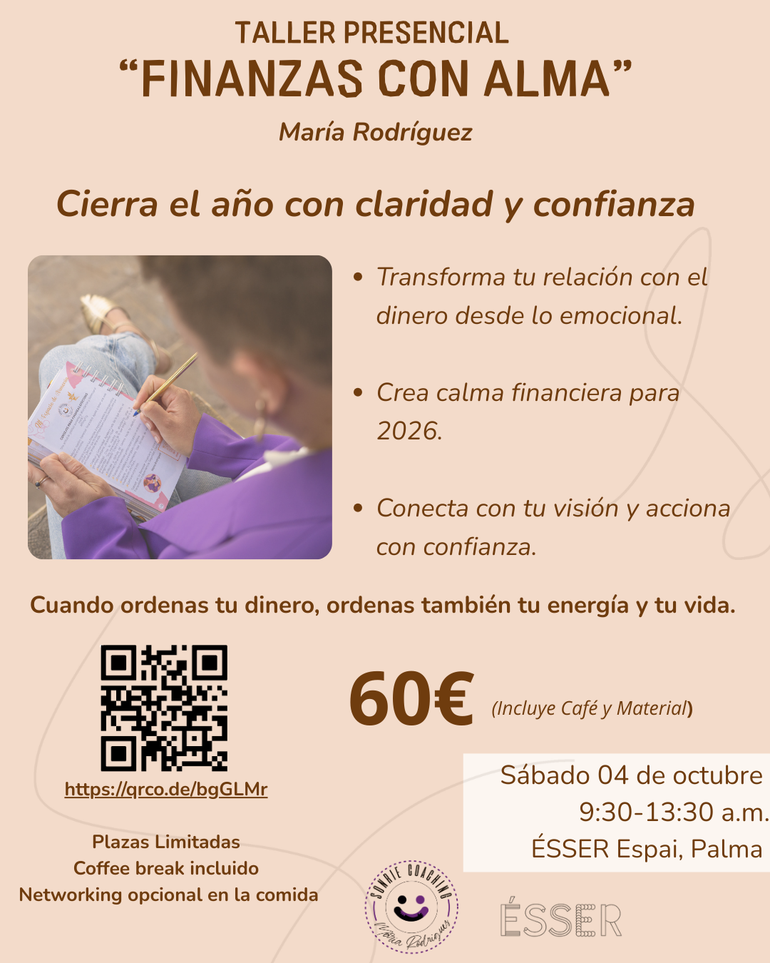 «Finanzas con Alma» Transforma tu relación con el dinero desde lo emocional. Crea calma financiera. Conecta con tu visión y acciona con confianza.