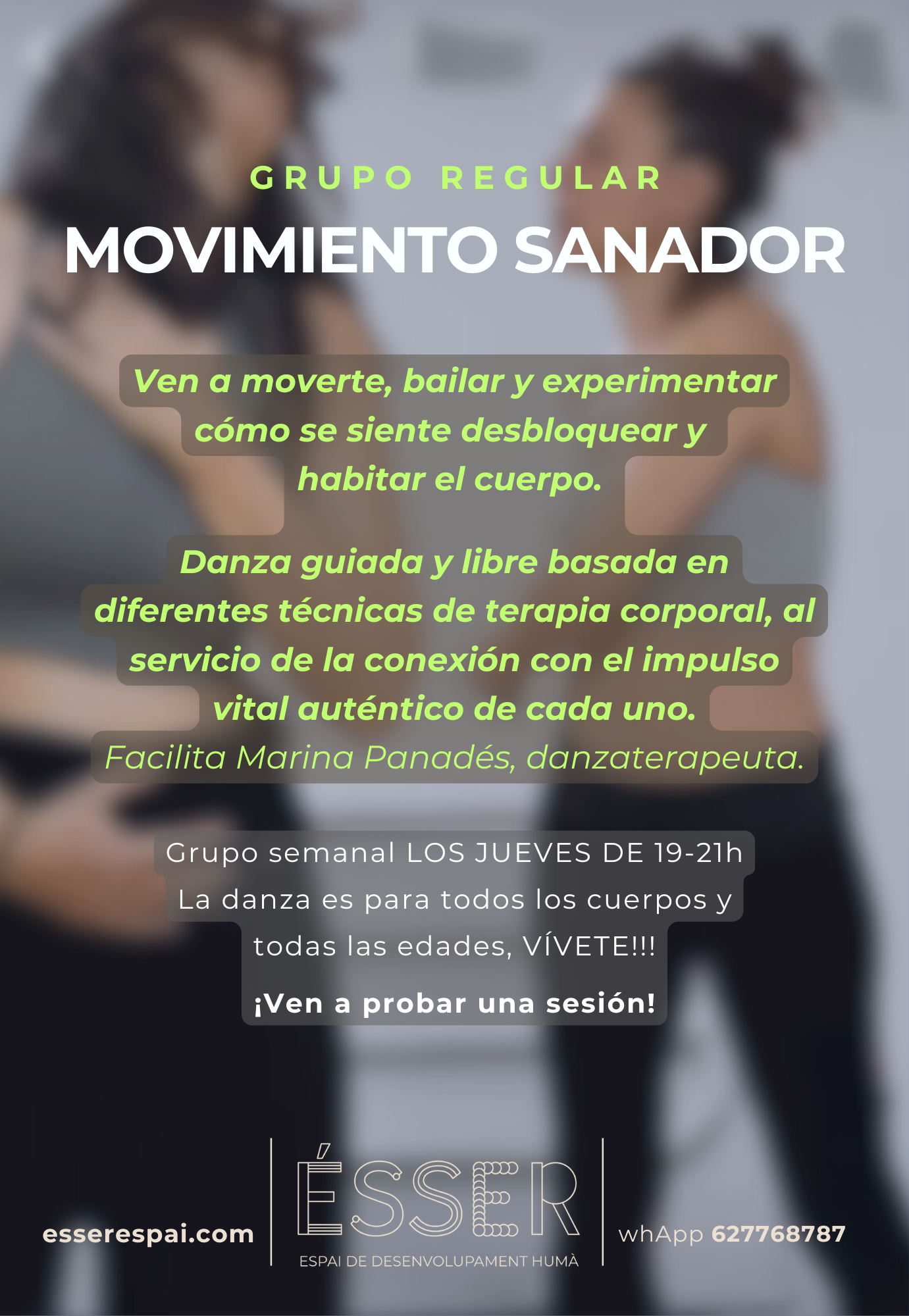 Facilitado por Marina Panadés. Ofrecemos grupo de movimiento semanal y talleres monográficos puntuales. Le hemos pedido prestado este nombre a Danielle Dutrenit, porque nos parece idóneo para aglutinar una síntesis de diferentes técnicas que buscan la salud a través del movimiento y la danza.